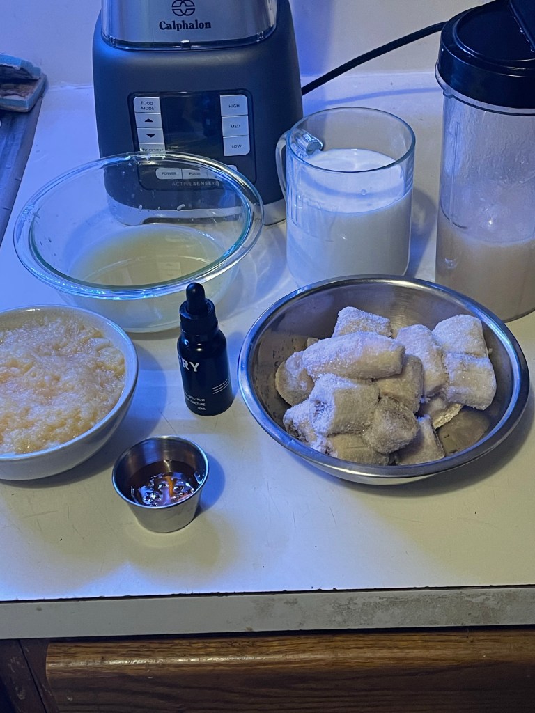 Cannabis tincture. One, two, three droppers — whatever your tolerance is. This is one of the times we kinda enjoy to not feel your face. Especially on a hot summer day. Oh, and as an added bonus, it makes enough so you can put it in containers in the freezer for a delish ice milk/kinda ice cream. It is summer time, after all.